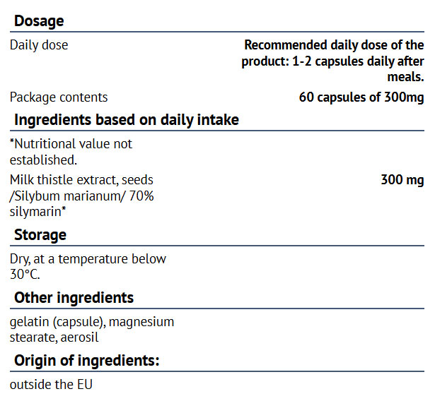 Съставки: Екстракт от бял трън (семена) – 70% силимарин