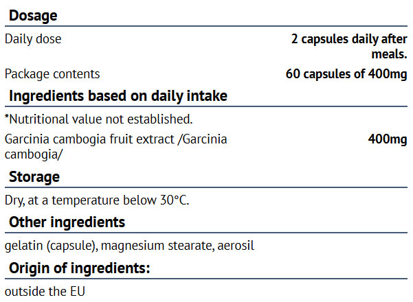 Съставки: Екстракт от Камбоджанска гарциния (плодове)