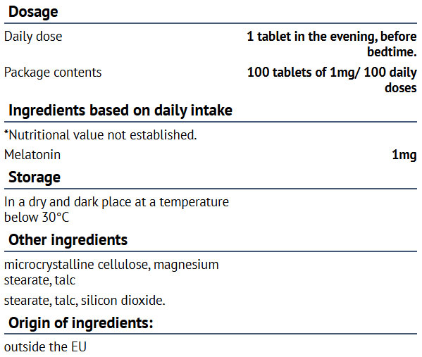 Мелатонинът е вещество, което се отделя естествено в организма и регулира цикъла сън-бодърстване. Приемът му подпомага адаптацията при смяна на часови зони, работа на смени или напрежение, което пречи на спокойния сън. Не натоварва организма и е подходящ за по-продължителен прием.