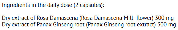Съставки: Екстракт от роза дамасцена (цвят), екстракт от корен на женшен