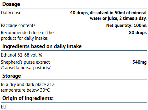 Съставки: Екстракт от овчарска торбичка, етанол 62–68%