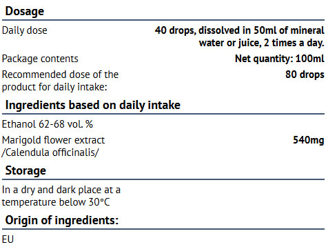 Съставки: Екстракт от невен (цвят), етанол (62–68% об.)