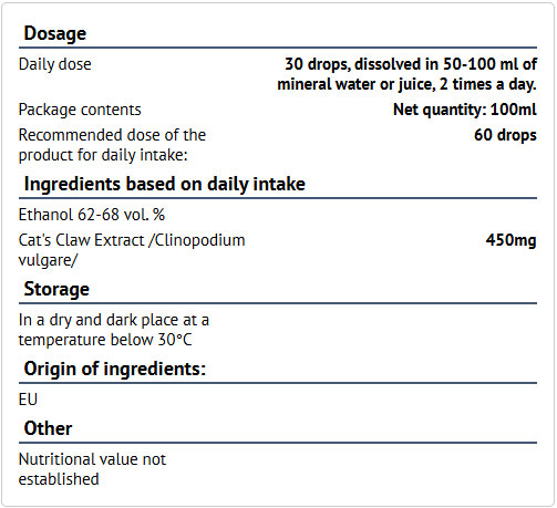 Начин на приемане: По 30 капки, разтворени в 50 мл вода или сок, 2 пъти дневно.
