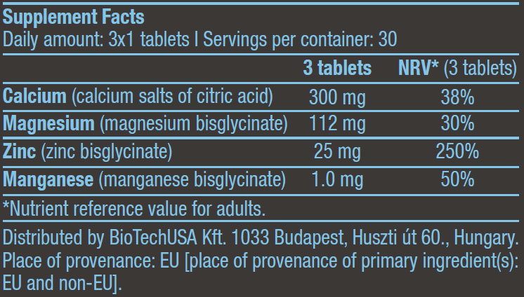 BIOTECH USA Calcium Zinc Magnesium from Organic Sources / 90 Tabs