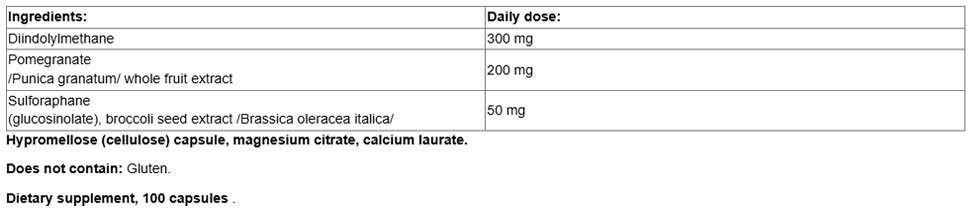 Съставки: дииндолилметан, нар, сулфорафан