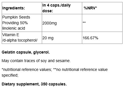 Pumpkin Seed Oil 500 mg / 350 Caps
