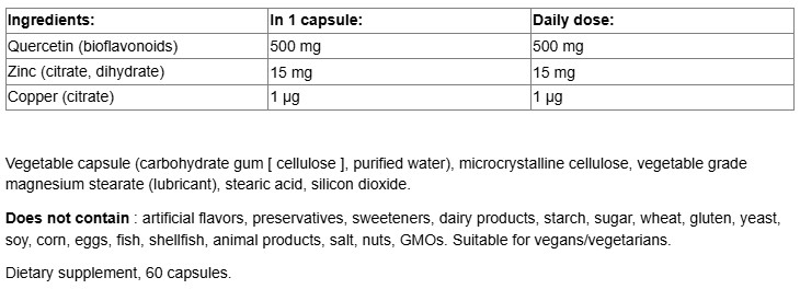 NATURAL FACTORS Quercetin with Zinc & Copper / 60 Vcaps