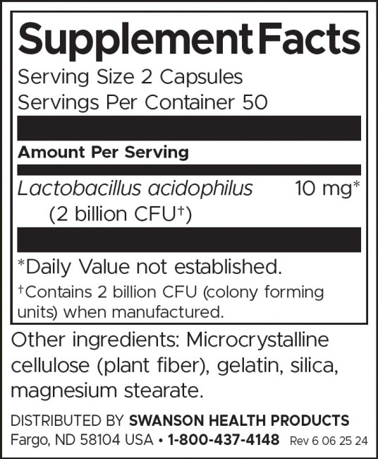 SWANSON Lactobacillus Acidophilus 1 Billion CFU / 100 Caps