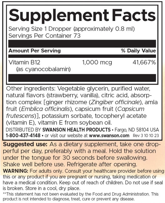 SWANSON B12 Cyanocobalamin - Strawberry Liquid / 59 ml