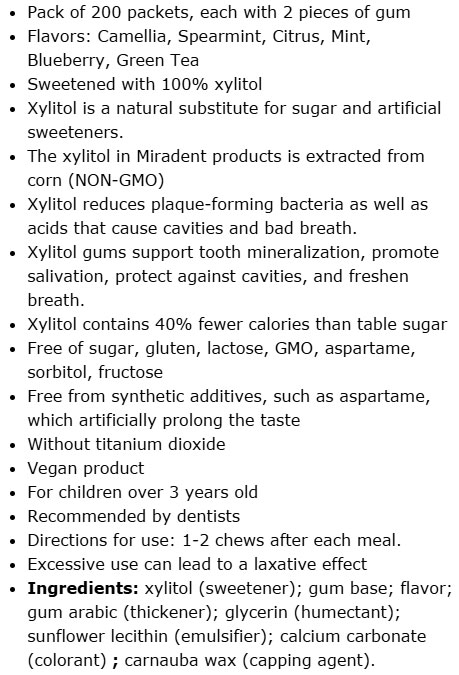 Коментари за MIRADENT Xylitol Chewing Gum / 6 Flavours / 200 x 2 Pieces