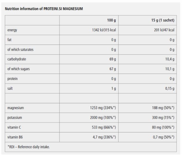 Магнезият в продукта на PROTEINI.SI е под формата на магнезиев цитрат. Това е органична форма на магнезий, която се понася много добре от организма и бързо се усвоява щом попадне в тялото.