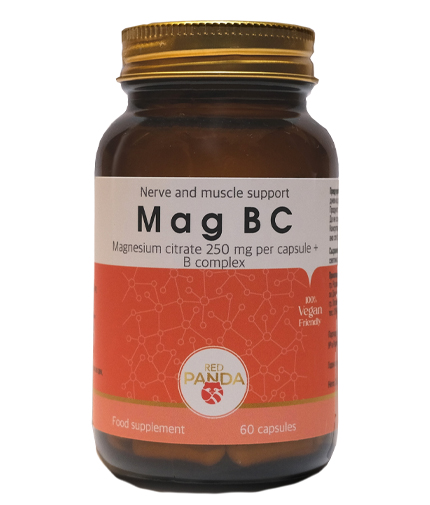 Mag BC от Red Panda е хранителна добавка, създадена за подкрепа на нервната система, мускулната функция и енергийния метаболизъм. Формулата комбинира магнезий с витамини от група B и биотин.