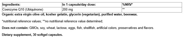 Coenzyme Q10 (Ubiquinone) 200 mg / 30 Softgels