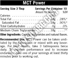 UNIVERSAL MCT Power е хранителна добавка в течна форма, която съдържа средноверижни триглицериди. MCT Power е мощен енергитичен суплемент, доставящ по 8,3 килокалории енергия с всеки грам. Въпреки, че съдържа мазнини, средноверижните триглицериди се усвояват по напълно различен начин от останалите мазнини. Те са подходящ енергиен източник за силовите Ви тренировки, тъй като не се нуждае от карнитин, а се окислява като въглехидрат.