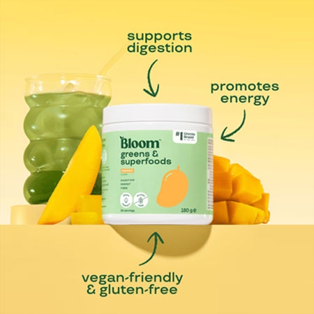 Bloom Greens & Superfoods от Bloom е прахообразна формула със зеленчуци, плодове и ензими, създадена за допълване на ежедневния хранителен режим.