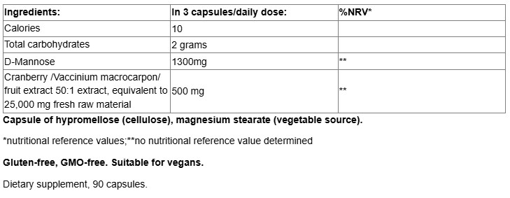 D-Mannose + Cranberry Extract 500 mg / 90 Caps
