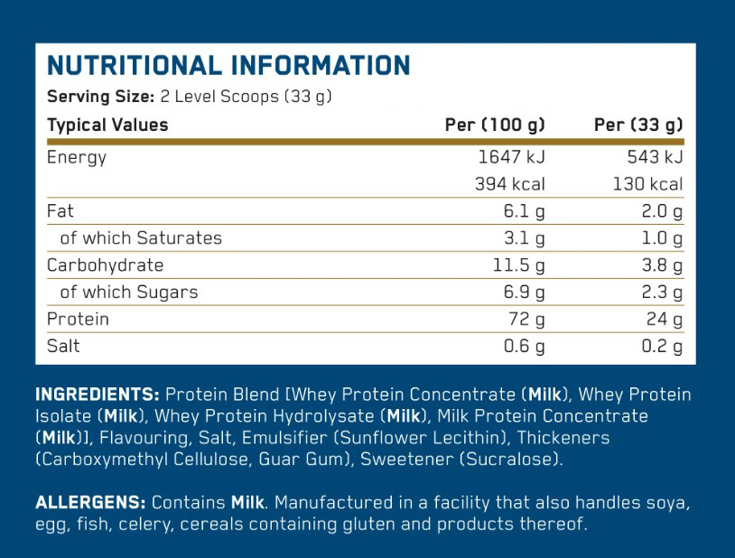 Съставки: Суроватъчен протеин концентрат (мляко) (слънчогледов лецитин), ISO-XP суроватъчен протеин изолат (мляко), хидролизиран суроватъчен протеин (мляко)