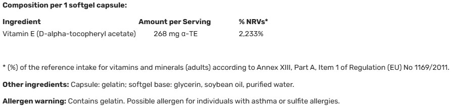 Допълнителни категории: Витамин Е, Витамини, Монокомпонентни, Антиоксиданти