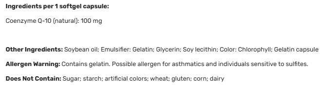 Другите имена на съставката за убиквинол и убиквинон - две различни форми, в които тази молекула може да "пребивава" в тялото. Коензимът може да се открие в няколко храни - месо, риба, млечни продукти, яйца. Растенията са бедни на този елемент.