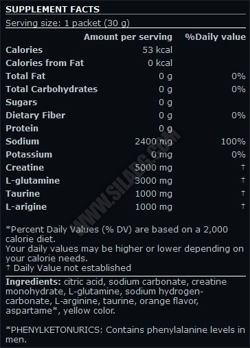 Затова TRANS-FX не съдържа въглехидрати, но доставя значително количество креатин и основни аминокиселини, осигуряващи максимално увеличаване на клетъчния обем. Тъй като абсорбционният процент е максимален, необходимата доза креатин е значително по-малка, отколкото при всички до момента известни продукти.