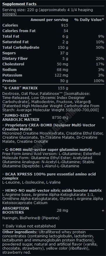 Jumbo представлява 6-компонентна въглехидратна матрица за бързо качване на мускулна маса.