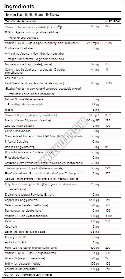 SOLGAR е хранителна добавка от най-висок клас, която съдържа балансиран комплекс минерали, витамини, антиоксиданти, фитоелементи и микроелементи с висока биологична активност. Формулата е предназначена за възрастни, като набавя всички необходими за организма елементи, попълва техните липси и подпомага редица функции и процеси.