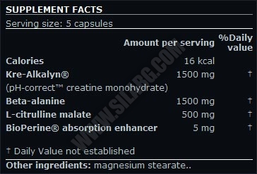 Съставки: кре-алкалин, бета аланин, цитрулин малат