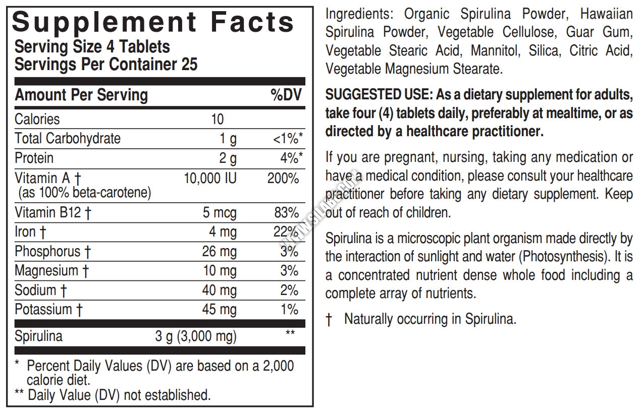 Спирулина (Arthrospira platensis) - 3000 mg.