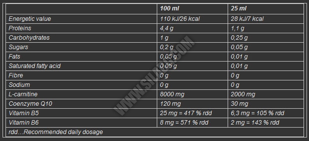 2000 мг. високо-ефективен L-карнитин във всяка единична доза;