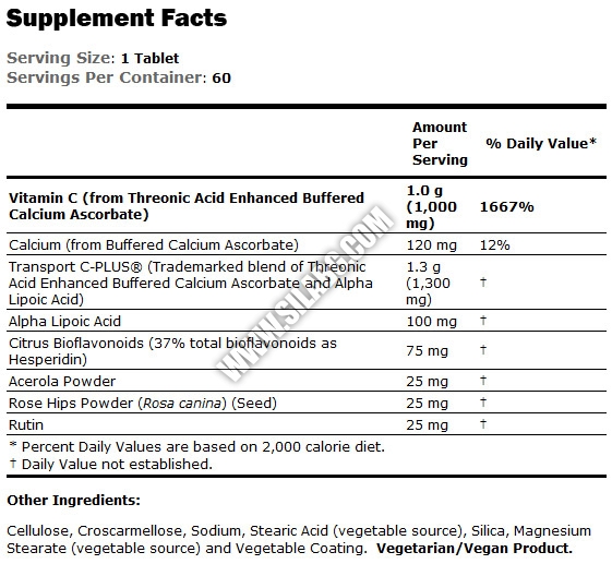Съставки: калций, екстракт от шипка, ацерола, рутин, алфа-липоева киселина, цитрусови биофлавоноиди