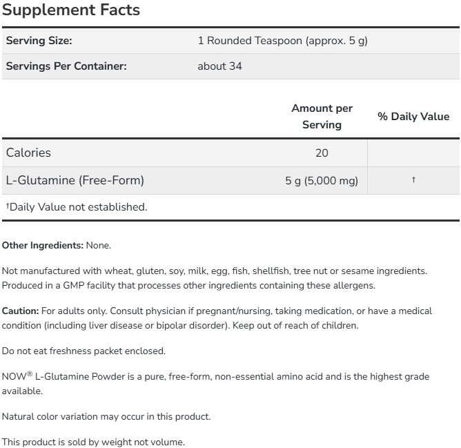 Като диетична добавка, приемайте 1 закръглена чаена лъжица (5 г) със сок, за предпочитане между храненията, 1 до 2 пъти на ден, в зависимост от вашите нужди. Обмислете приемането на този продукт в комбинация с NOW B-6, P-5-P и Whey Protein.