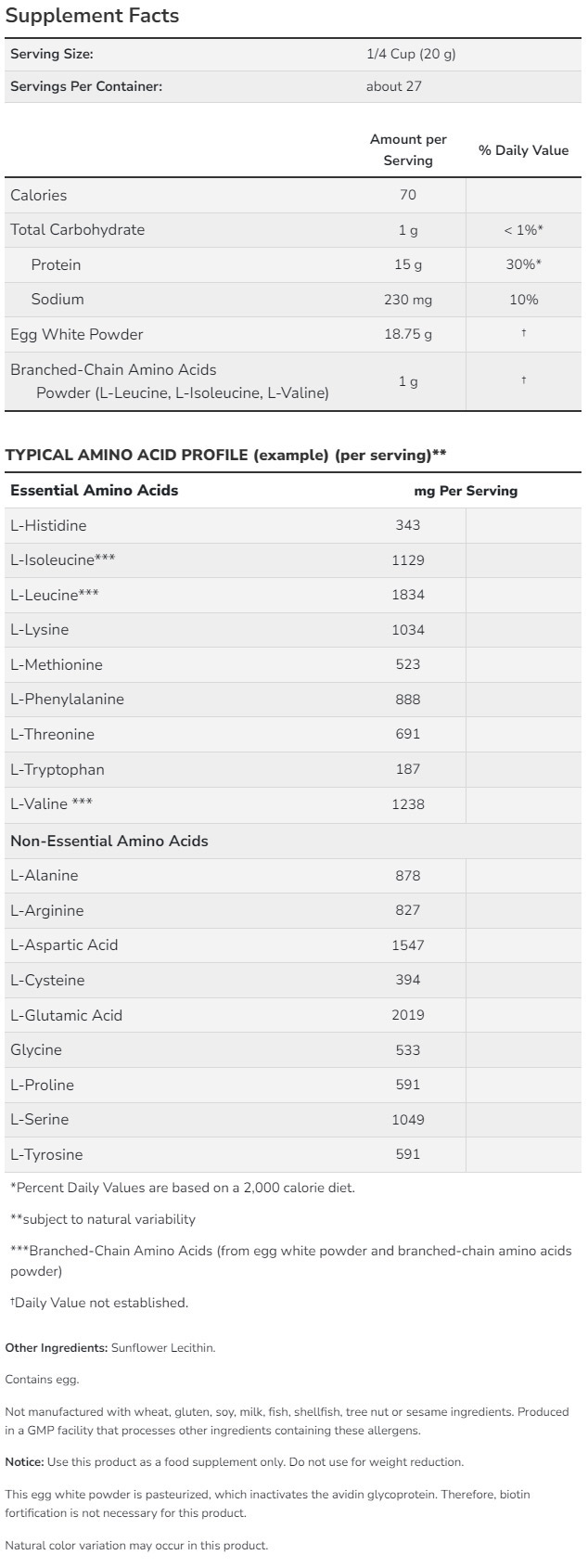 Eggwhite Protein е отличен естествен източник на висококачествен протеин. Качеството на един протеин се оценява от