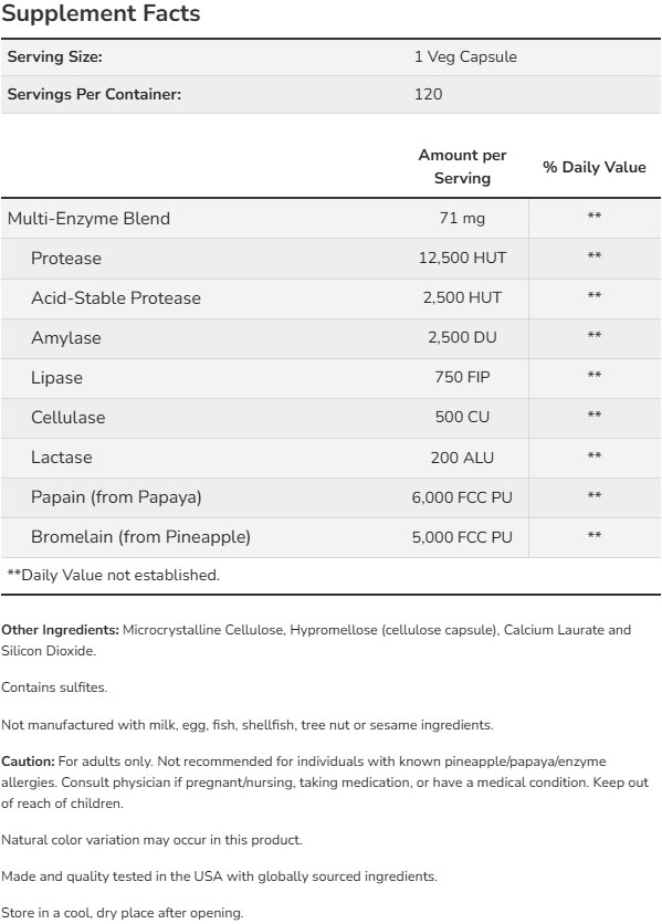 Съставки: амилаза, протеаза, липаза, папаин, бромелаин