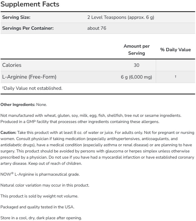 Като диетична добавка, приемайте 2 изравнени чаени лъжици (5 г) на ден със сок или вода, за предпочитане на празен стомах. Обмислете приемането на този продукт в комбинация с NOWL-Citrulline, P-5-Pи AAKG.