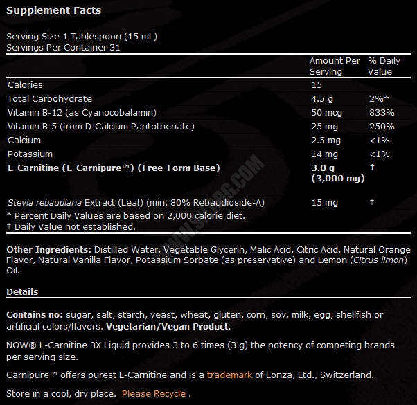 NOW L-Carnitine Liquid ви осигурявацели 3000 мг л-карнитин.