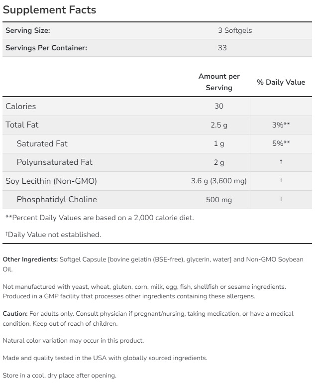 Лецитин участва в структурата на всяка клетка и поддържа нормалното протичане на множество биологични функции в човешкото тяло. Той е съставна част на мозъчната и нервната тъкан и е необходим елемент за предаване на нервните импулси. Това го превръща в ценно вещество за нормалното умствено и физическо състояние на човешкия организъм.