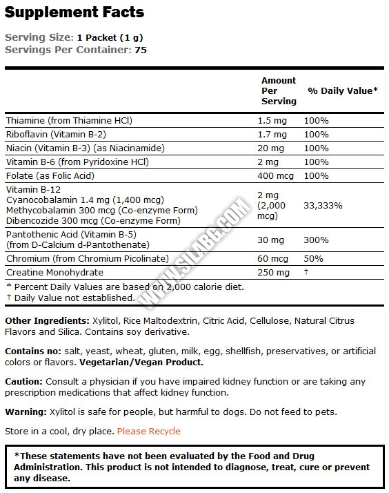 2000 мкг. витамин В-12 във всяко пакетче;