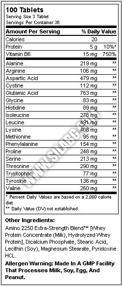 Всяка таблетка Amino 1900 е пълна с 1900мг лесно смилаеми пептидно-свързани амино киселини, както и засилено съдържание на витамин В6.