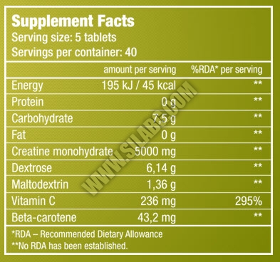 Съставки: креатин монохидрат, витамин С