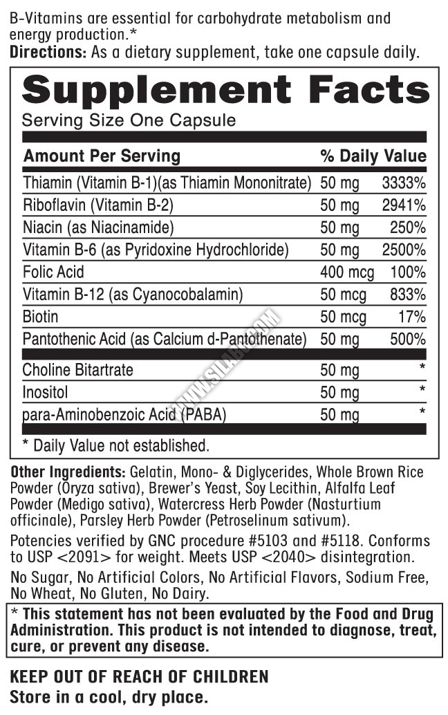 Свойства и характеристики на Vitamin B-Complex от GNC: