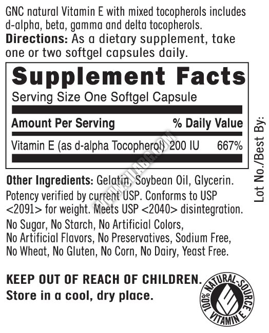 Свойства  и характеристики на Natural Vitamin E от GNC: