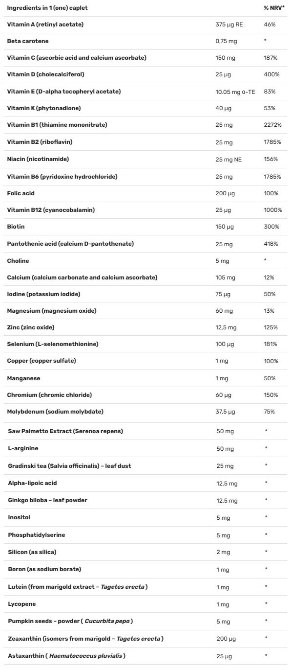 Подобрена формула с витамини и минерали за мъже над 50 год.