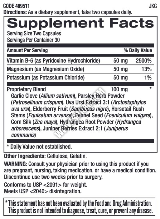 Съставки: екстракт от магданоз, екстракт от копър, магнезий, витамин В6, екстракт от полски хвощ