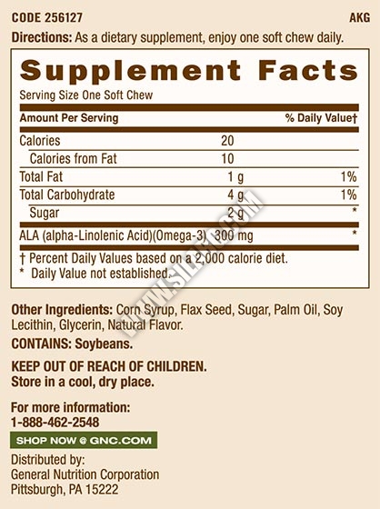 Свойства и характеристики на Omega Flax Soft Chews от GNC: