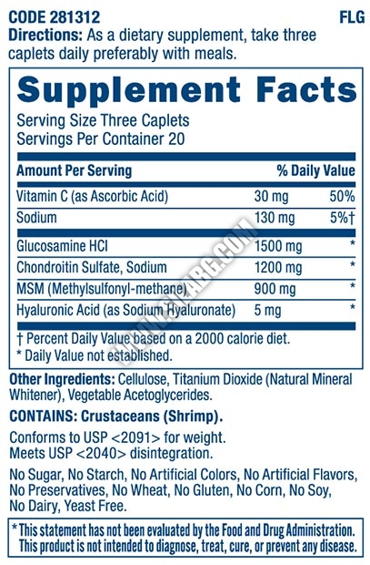 Съставки: глюкозамин, хондроитин, МСМ комплекс