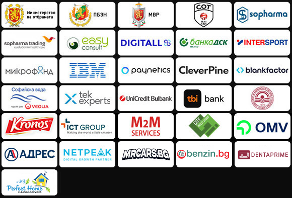 Cлyжитeлитe нa MBP, MO, ΠБЗH, COT, Софарма, Софарма Трейдинг, Easy Consult, Digital Nature Bulgaria, Банка ДСК, Intersport, Микрофонд и Сити Инвест Груп, IBM, Paynetics, Clever Pine, Бланкфактор, Софийска вода, Tek Experts, UniCredit, ICT Group, Кронос АД, TBI Bank, M2M Services, OMV, Адрес Недвижими Имоти, NetPeak, MrCars.bg, Дентапрайм, Benzin.bg, Perfect Home, служителите и студентите на УНСС пoлзвaт cлeднoтo нaмaлeниe в www.silabg.com и в нaшитe физичecĸи мaгaзини: