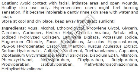 Suggested use: Squeeze a bit of the gel in your hands and massage the spot thoroughly, using circular motions.