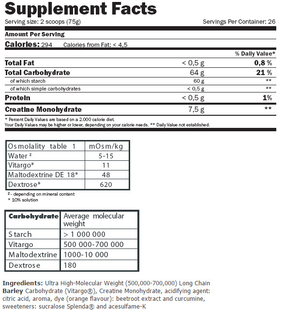 Vitargo Crea-X by Amix marries the unmatched power of creatine monohydrate with the sustained energy release of long-chain barley carbohydrates - Vitargo. This powerful duo is designed to propel you to the next level of your fitness journey, providing a fusion of immediate strength and lasting endurance.