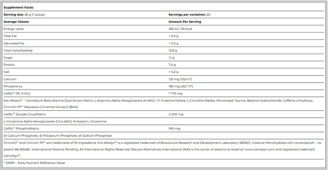 CellEx Unlimited by Amix redefines the boundaries of pre-workout supplements. Drawing on the potent synergy of Kre-Alkalyn - CarnoSyn, Beta-Alanine Dual Action Matrix, L-Arginine Alpha-Ketoglutarate (A-AKG), Tri-Creatine Malate, and a host of other powerhouse ingredients, this blend promises unparalleled energy, focus, and endurance for those intense workout sessions.