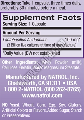 Properties and benefits of Acidophilus Probiotic 100 mg by Natrol: